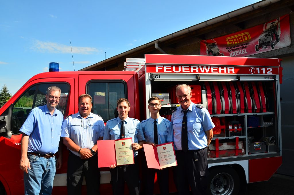 - Niclas Brenner, Fabian Raskop und Darius Krekel wurden zum Feuerwehrmann befördert.
